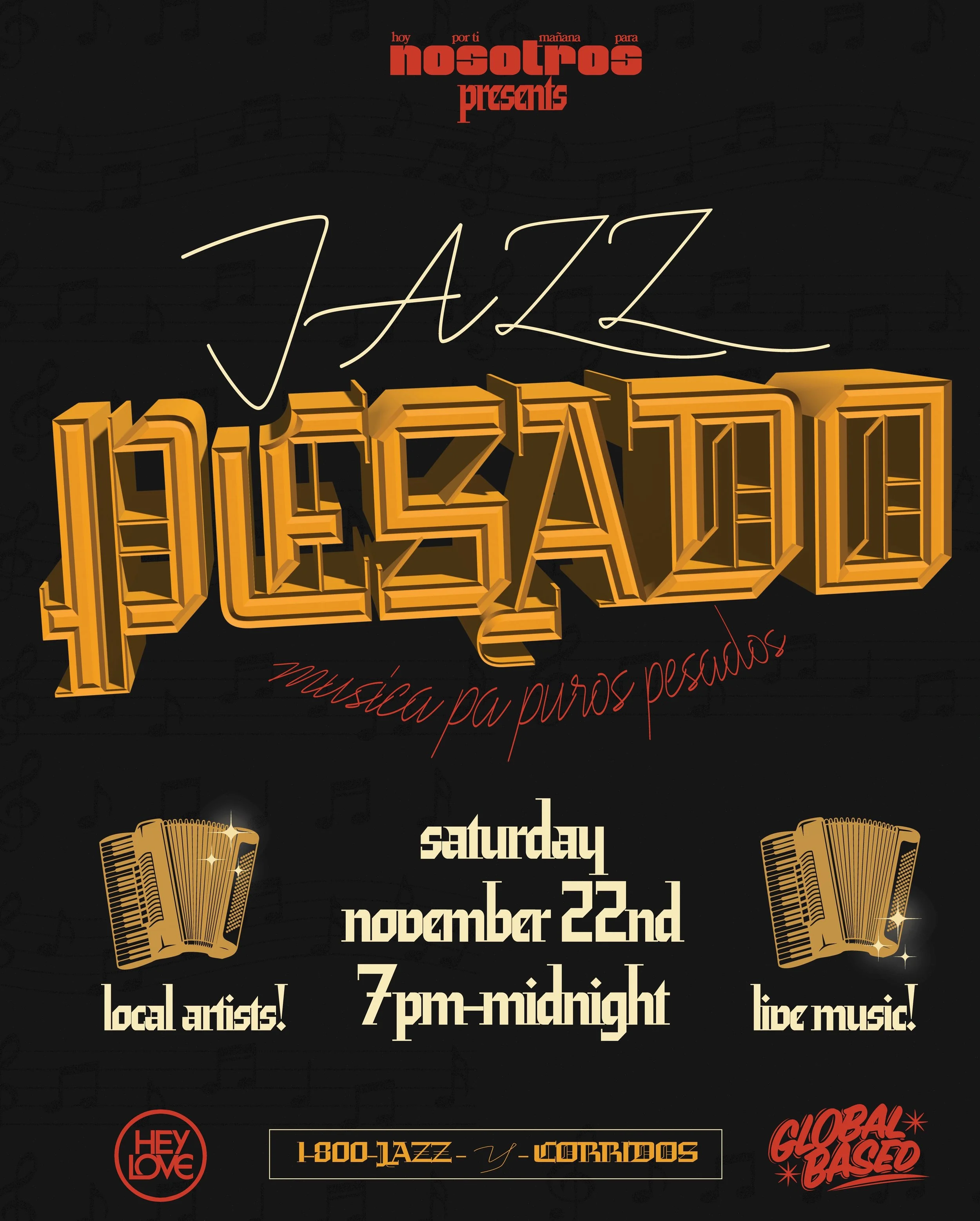 We want to formally invite you to Jazz Pesado Vol. 2 with @globalbased This is going to be a museum of art and history. A celebration of past, present and future. A form of protest and an act of resistance. In a society, where we are constantly being told who we are and biased negative narratives are being pushed against our people, let this be a time for us to reclaim our narrative and take back our stories and tell them how we want. CON MÚSICA Y TAMBORA.